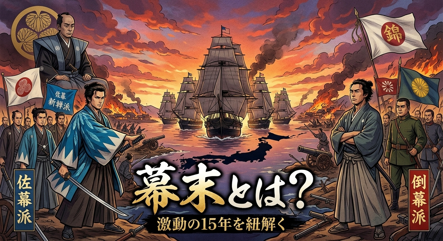 「幕末(ばくまつ)」という言葉は、歴史の授業で必ず登場しながら、その複雑さゆえに全体像がつかみにくい時代です。坂本龍馬・西郷隆盛・新選組など、日本史上最も個性的な人物たちが活躍したこの時代は、なぜ起きたのか、どのように展開し、何が変わったのか——本記事では幕末の全体像を体系的に解説します。