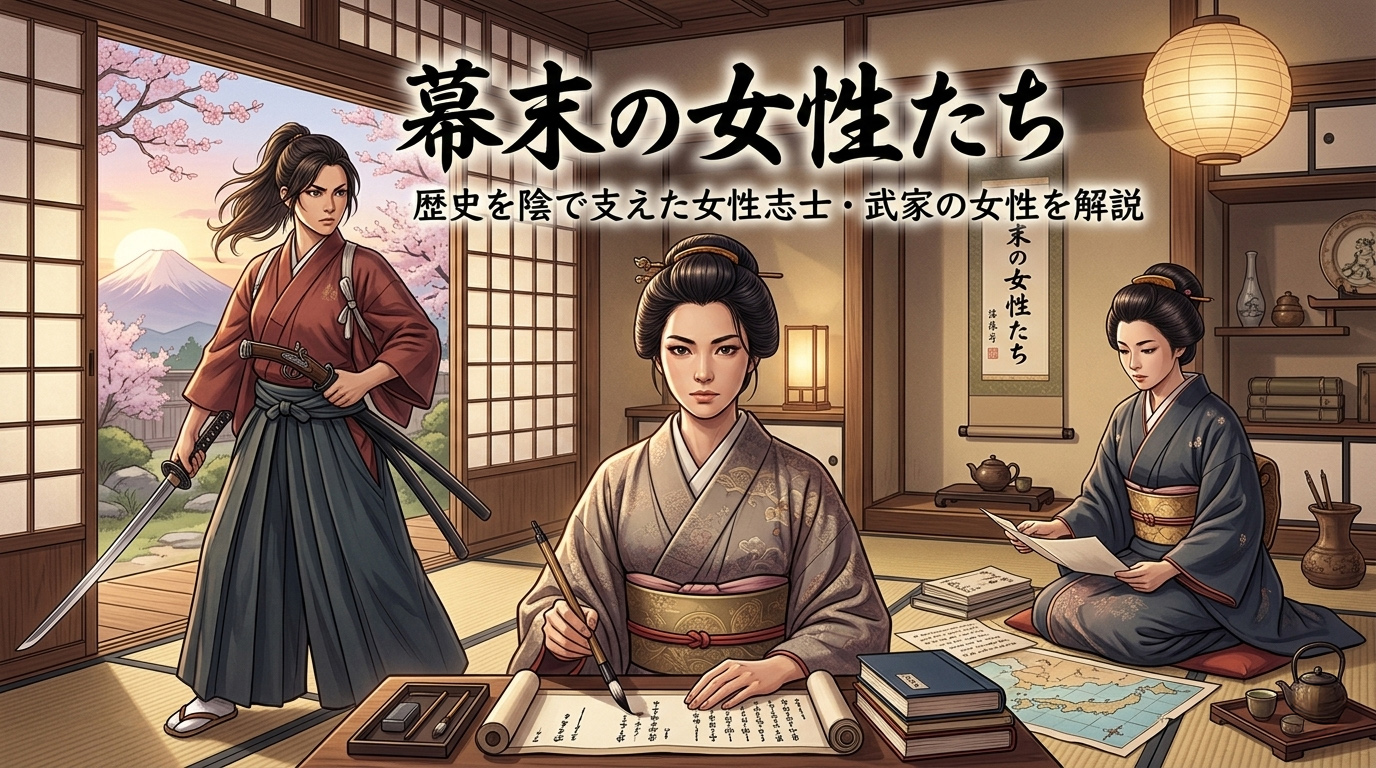幕末の歴史は坂本龍馬・西郷隆盛・新選組という男性たちの物語として語られることが多いですが、その陰に数多くの女性たちが存在しました。志士を支えた妻・情報を伝えた芸妓・武器を手に戦った武家の女性・教育者として時代を動かした女性——本記事では、幕末を生きた女性たちの知られざる物語を解説します。
