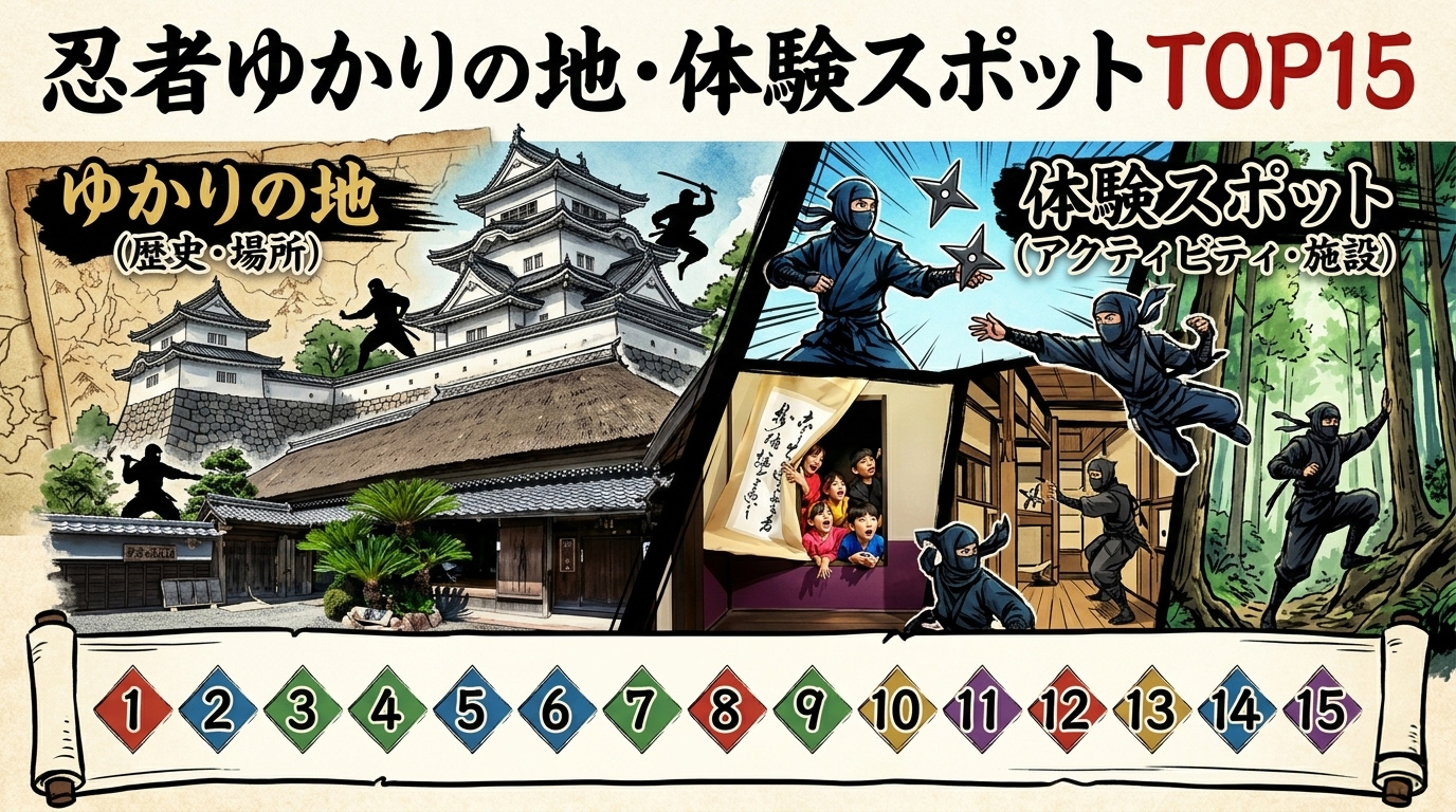 侍・武士の史跡と合わせて忍者ゆかりの地を巡ることで、戦国時代の「表の顔(侍)」と「影の顔(忍者)」の両方から日本の歴史を立体的に理解する旅が実現できます。